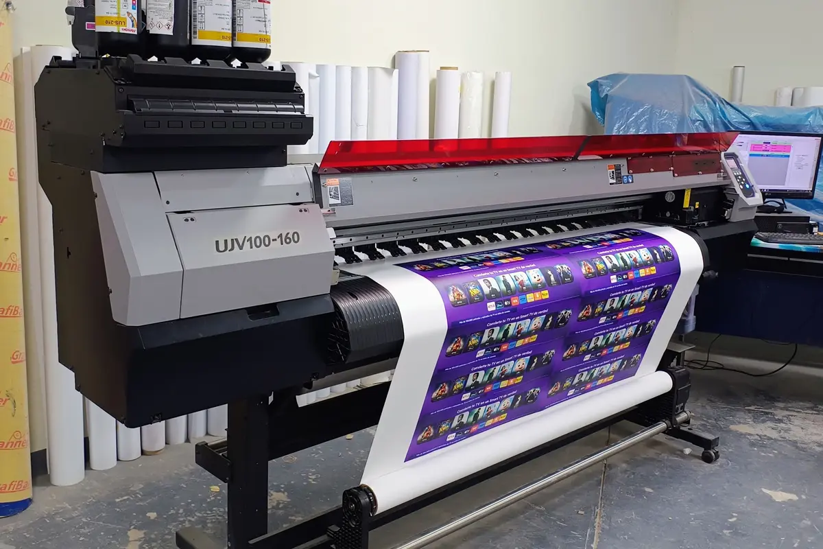 - Impresión digital de gran formato: lonas, viniles, banners, paneles y más con colores vibrantes y duraderos.